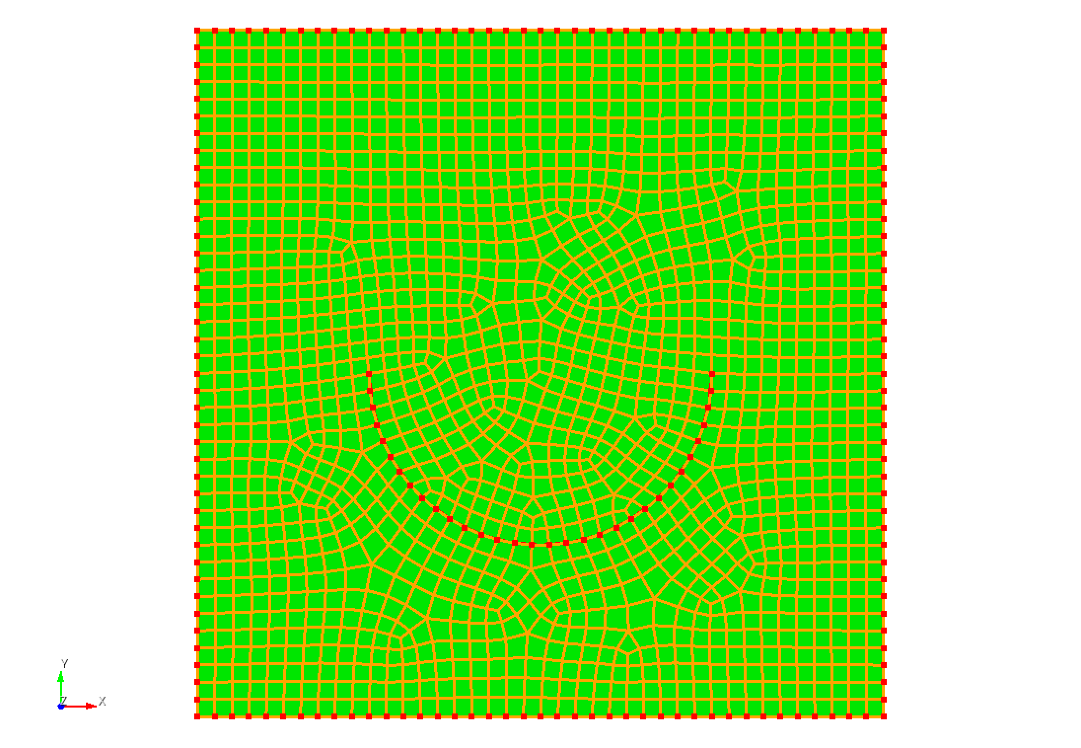 I want to “cut” or “disconnect” the nodes that are on either side of the interface so that the nodes on the semi-circular boundary are no longer shared by the elements on either side of the interface.