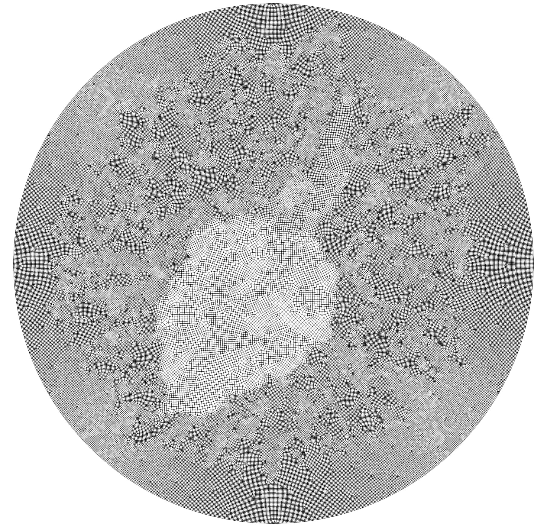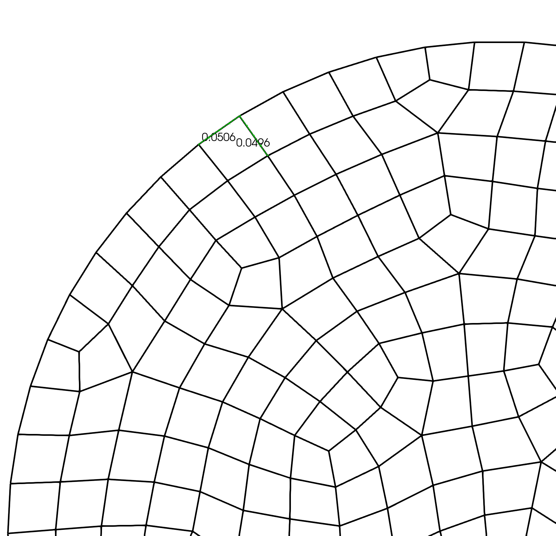 However, I’ve found that the paved meshes start to have inconsistent element sizes when the element size is very small relative to the geometry. Here’s what the mesh looks like with an element size of 0.0025m: