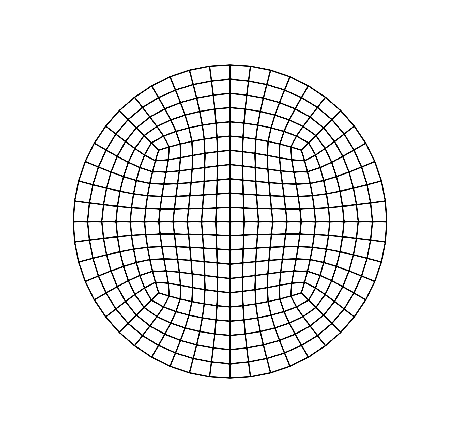 There are three strategies I can think of that would give us a quad mesh with relatively uniform element sizes:
