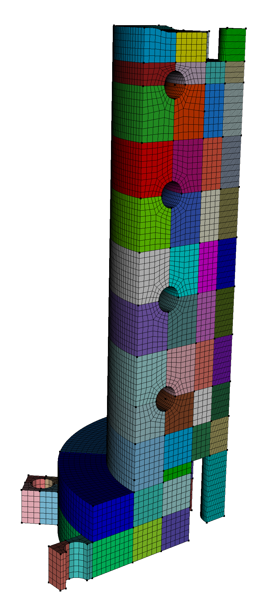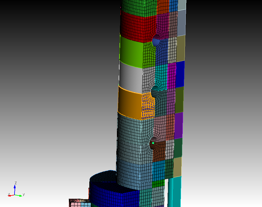 There’s no need to impose such a discretization on those remaining curves. Because those volumes have sweep mesh schemes, the linking surfaces are going to be mapped meshes. And since the volumes above and below are already meshed they’re already constrained. So applying an additional constraint will lead to an overconstrained system.