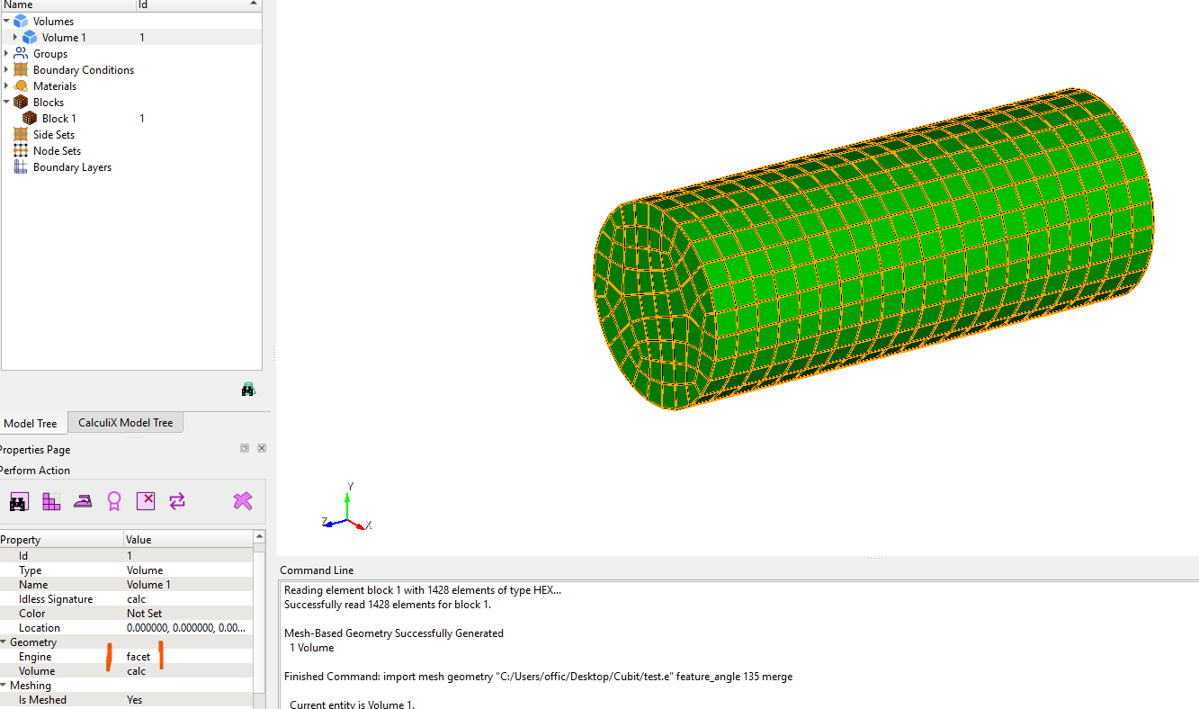 import mesh geometry "C:/Users/offic/Desktop/Cubit/test.e" feature_angle 135.00 merge